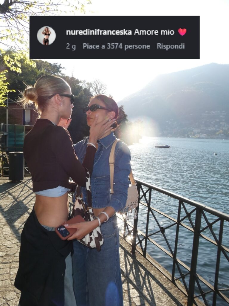Lei accarezza il pancione dell’amica, l’aiuta a stendere la crema solare per proteggere l’epidermide dell’altra, ormai agli sgoccioli con la gravidanza (a maggio darà alla luce un maschietto). Il clima è rilassante e disteso, fatto di chiacchiere e risate e tantissima complicità. Elodie e Franceska Nuredini sono inseparabili nel weekend con l’amica Diletta Leotta sul lago di Como. La cantante condivide gli scatti, la ballerina commenta con parole che paiono confermare la relazione. “Amore mio”, scrive.