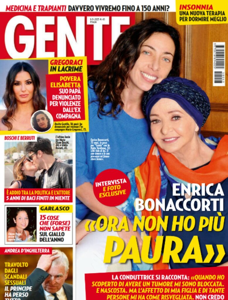 Enrica Bonaccorti posa con il turbante in testa accanto alla figlia Verdiana, 51 anni, sulla copertina di Gente. Nella lunga intervista al settimanale svela cosa ha provato quando ha scoperto il tumore al pancreas. “Era come se non ci fossi già più”, confessa.