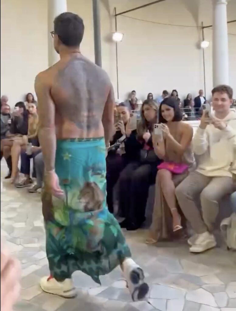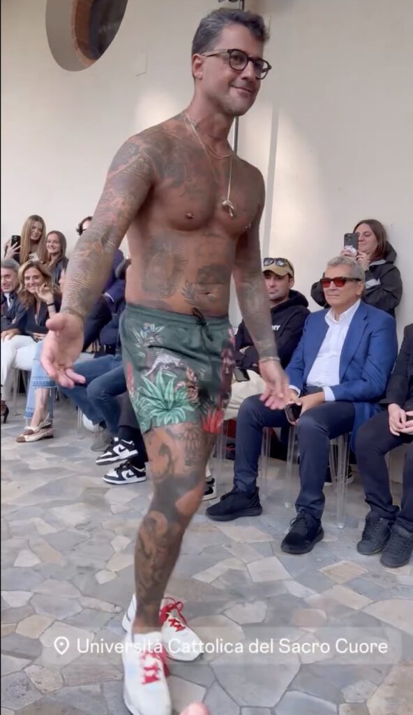 - Eccolo mentre sfila col fisico in vista, tatuato e abbronzato dopo l’estate