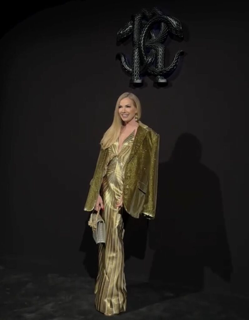 - La conduttrice 58enne e la figlia 20enne ospiti della sfilata di Roberto Cavalli