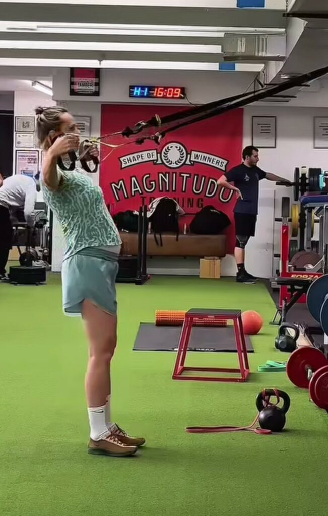 Non sceglie il pilates o lo yoga in palestra. Federica Pellegrini, incinta del suo secondo bebè, non rinuncia a un super allenamento, tutt’altro che soft. In un reel si fa vedere in sala mentre solleva pesi enormi, fa affondi, usa macchinari per braccia e gambe. Non si nega neanche la cosiddetta Battle Ropes, un allenamento funzionale ad alta intensità che usa funi nautiche per creare onde, lavorando su forza, resistenza cardiovascolare, equilibrio e core stability. “Fino al settimo”, precisa la ex campionessa olimpica 37enne, riferendosi al mese di gestazione in cui si trova. Lavora col personal trainer che la guida.