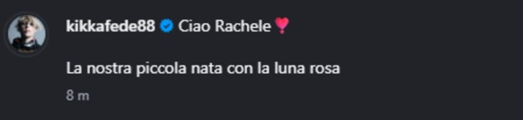 In una foto Federica e Matteo si fanno vedere nella stanza di ospedale: lei ha la piccola già attaccata al seno. "Ciao Rachele. La nostra piccola nata con la luna rosa”, scrivono nel post condiviso da entrambi.
