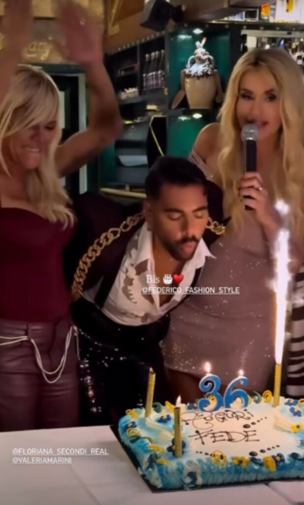 Arrivo trionfale per Valeria Marini, che a Milano sabato 4 era stranamente assente. La showgirl 58enne abbraccia Federico e non lo lascia più. Al momento della torta gli canta un ‘happy birthday’ speciale. E’ la madrina di Sophie Maelle, 8 anni, che l’hair sylist ha avuto dall’ex Letizia Porcu.