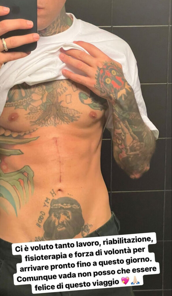 Fedez non si nasconde, non l’ha mai fatto. Sul social il rapper 32enne mostra ai milioni di follower la lunga cicatrice sull’addome tre mesi dopo l’operazione per rimuovere il cancro. E’ contento che si sia ridotta e sia perfettamente guarita: è fiero di se stesso.