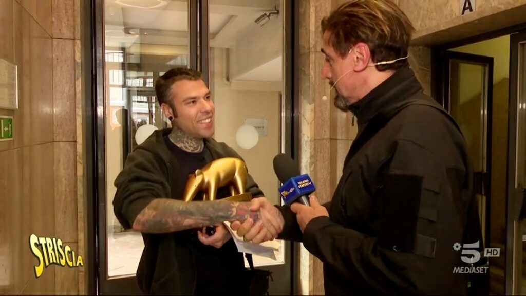 Fedez si guadagna un bel Tapiro d’Oro di Striscia. A Valerio Staffelli, che glielo rifila a Milano, spiega perché è andato a Dubai, anche se aveva promesso precedentemente di non farlo mai più. In una puntata del suo podcast Muschio Selvaggio il rapper 33enne aveva definito la località degli Emirati Arabi Uniti: “Una Disneyland con i cadaveri sotto il tappeto”. Federico Lucia ammette senza alcun problema la sua incoerenza e rivela il perché è volato lì con Chiara Ferragni e i due figli, Leone, 5 anni, e Vittoria, 2.