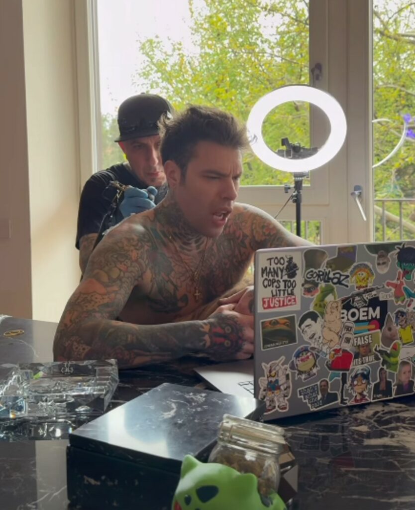 Il cantante nel pomeriggio di giovedì 17 aprile ha pubblicato sul social alcuni video che lo mostrano in casa mentre un tatuatore gli imprime inchiostro sul collo e sulla schiena.