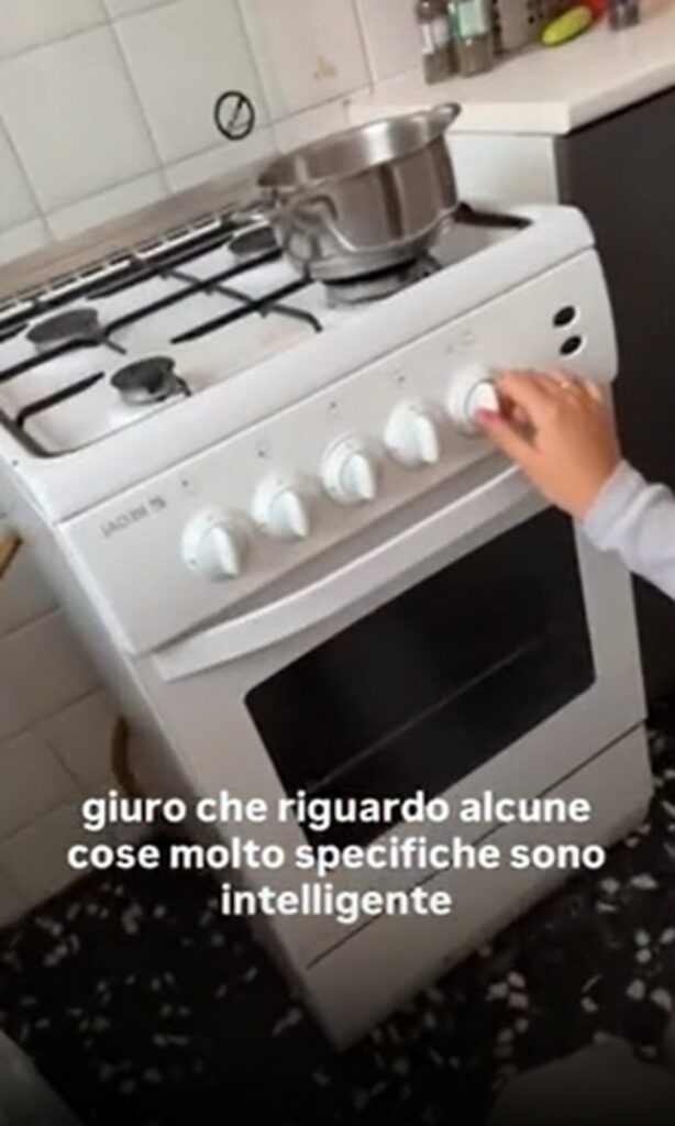 In una clip che registra direttamente dalla cucina, Matilde rivela tutto il suo disagio: “Dunque ragazzi, ero consapevole di non saper fare niente, ma è folle quanto io non sappia fare niente! Cioè, boh, sto provando ad accendere il fornello di casa mia… Non riesco, non riesco. Non capisco come funzionino? Non userò il fuoco”. E precisa: "Giuro che riguardo ad alcune cose molto specifiche sono intelligente".