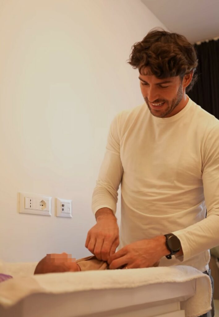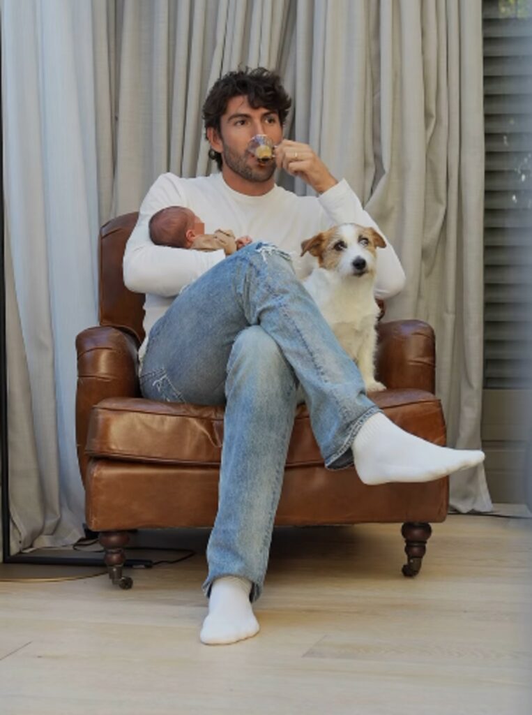 Nacho è insieme alla piccola: le cambia il pannolino, la accudisce tenero ed emozionato. Accarezza la figlia, la bacia. Poi inserisce le cialde nella macchina e si fa un caffè: degusta la bevanda seduto in poltrona, tenendo sempre tra le braccia Clarita, come la chiamano affettuosamente in famiglia. Con loro c’è anche Nino, l’amatissimo Jack Russel, inseparabile.