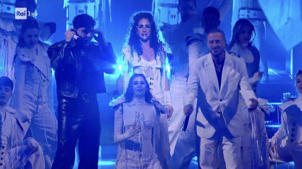 La 29enne è stata la ballerina principale durante l’esibizione del padre con i The Kolors sulle note di “The Riddle”, hit anni ’80 di Nik Kershaw.