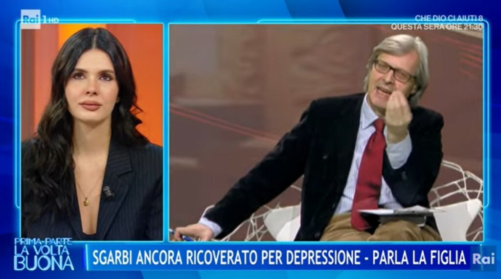 Evelina torna a La Volta Buona. In tv, su Rai1, nel programma di Caterina Balivo, la figlia di Vittorio Sgarbi parla ancora del genitore ricoverato in ospedale, al Gemelli di Roma, a causa della depressione e il forte deperimento. “Le persone che gli stanno intorno non mi fanno sentire benvenuta, pesante”, confessa la 25enne.