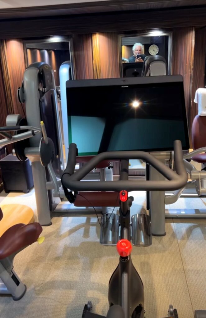 Flavio Briatore naviga le coste della Sardegna a bordo di un enorme yacht da quasi 20 milioni di euro. L’imprenditore 73enne, ex marito di Elisabetta Gregoraci, da cui ha avuto il figlio 13enne Nathan Falco, orgoglioso mostra la palestra all’interno della lussuosissima imbarcazione. La sala è enorme, pena zeppa di macchine super tecnologiche per allenarsi. Alle pareti foto che ritraggono l’ex manager di Formula Uno con alcuni personaggi famosi quanto lui.
