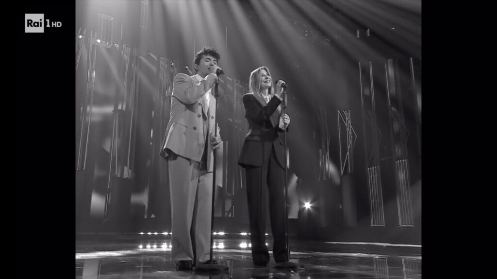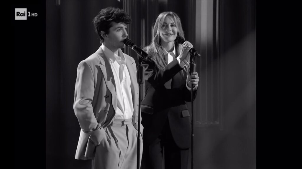 Intorno alle 22.30 di venerdì 27 febbraio la 49enne romana – nota al pubblico soprattutto per il suo programma in onda su Rai2 “Belve” – ha sceso le scale dell’Ariston insieme a Filippo Uttinacci (vero nome dell’artista in gara al Festival con il brano “Stupida sfortuna”) e si è esibita – con lo schermo in bianco e nero per un effetto retrò – in una versione rivisitata di “Parole Parole” di Mina, brano iconico del 1972.