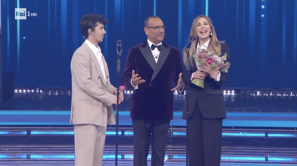 Conti – che ha consegnato i fiori come da rito – ha chiosato: “Avete fatto la versione invertita. Tu (rivolgendosi a Filippo, ndr) hai fatto Mina e tu (guardando Francesca, ndr) Alberto Lupo. Complimenti”.
