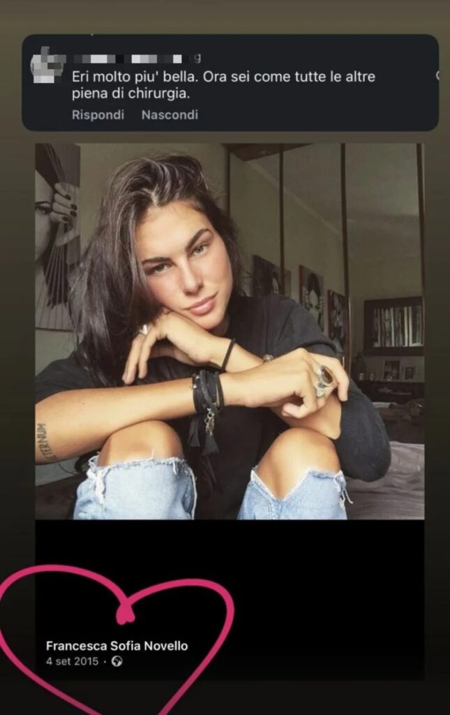 Francesca Sofia conclude: “Se scegliete di intraprendere questo percorso, affidatevi sempre a professionisti seri e qualificati e non inseguite un modello di bellezza standardizzato. La bellezza autentica non è uniforme né replicabile: è profondamente soggettiva e legata all’armonia con se stessi. Baci a tutti”.