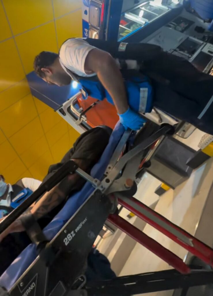- Il 36enne romano sul social condivide le immagini che lo ritraggono prima a terra e poi sull’ambulanza