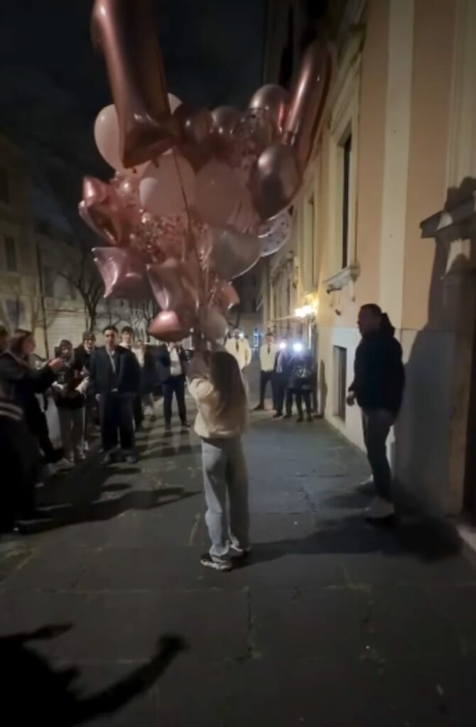 A fine pasto, dopo aver gustato le pietanze e il dolce, in strada i palloncini vengono lanciati in aria e salgono su nel cielo della Capitale. La bambina li guarda insieme agli altri ed esprime un desiderio.