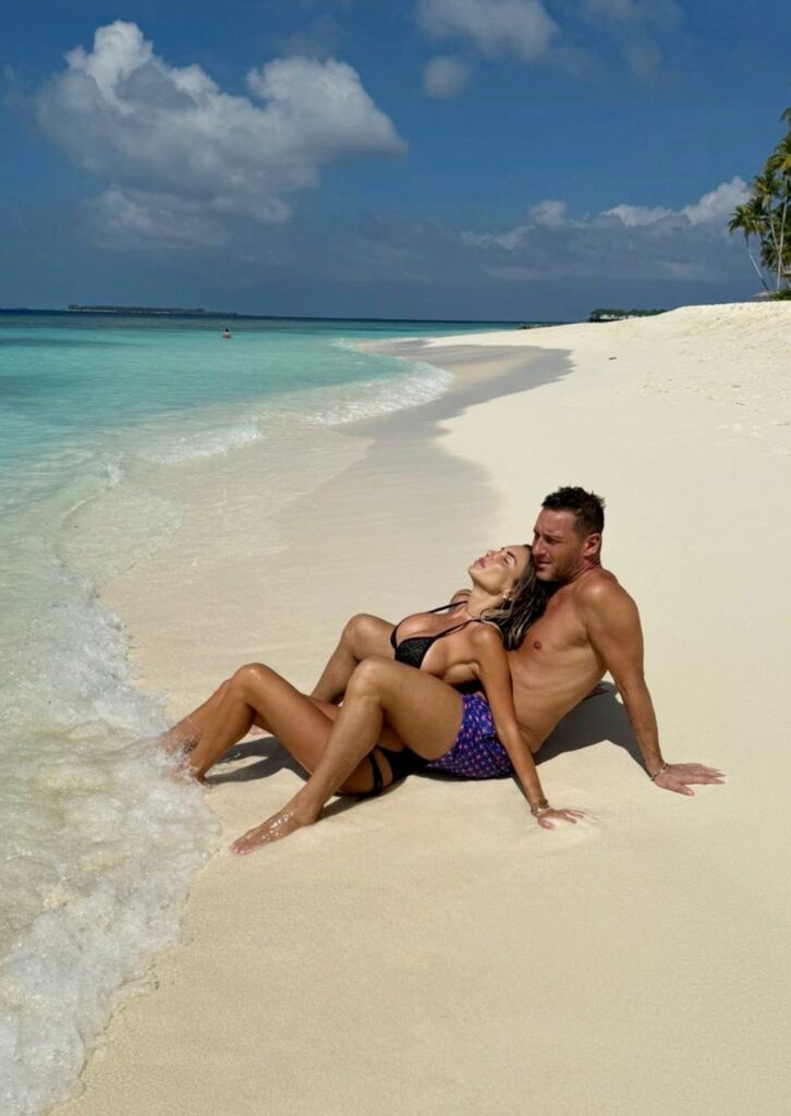 La coppia è volata alle Maldive già da qualche giorno. Qui ha dato il benvenuto al 2024. Ora ha anche condiviso uno scatto in costume mentre il sole li bacia sulla spiaggia.