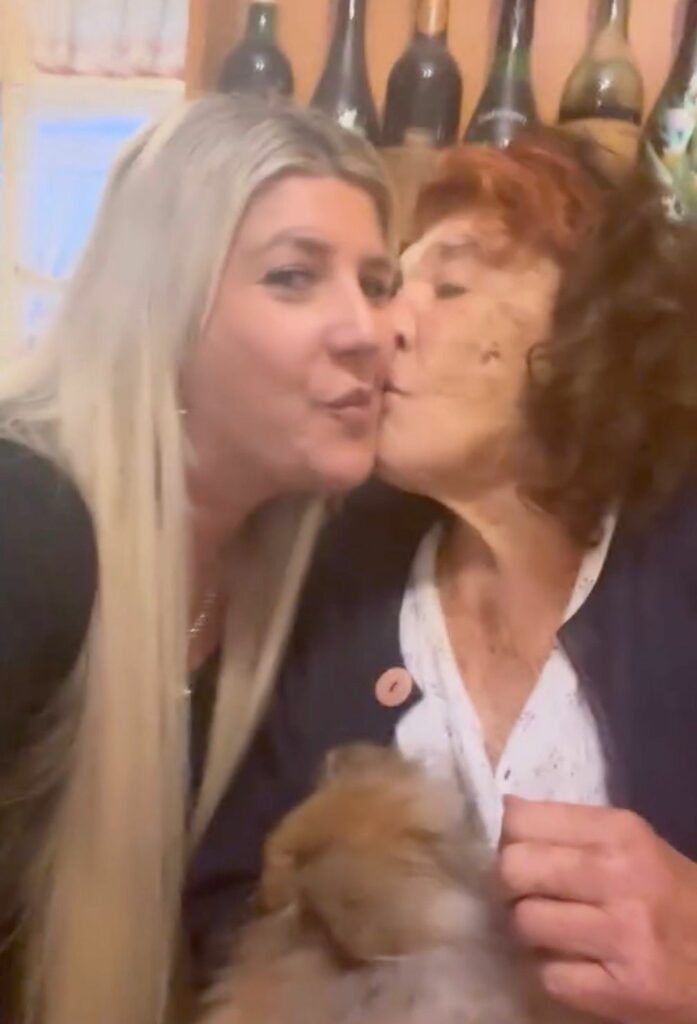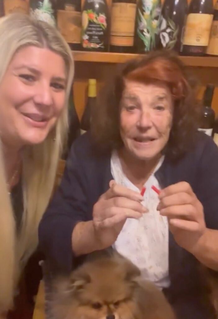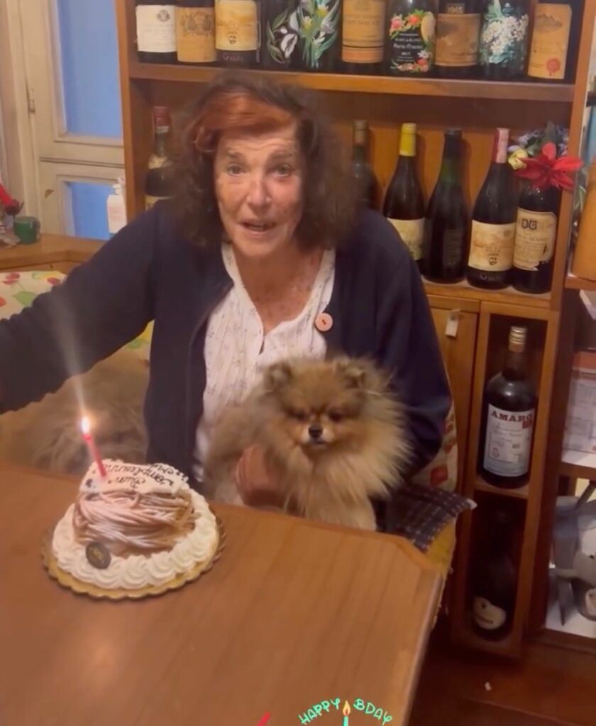 “Mamma tutto bene?”, chiede all’ex gieffina vip. “Sì, mi hai fatto venire qui in cucina…”, risponde lei. “Ti volevo fare un tè, lo vuoi?”, le domanda la figlia. Patrizia dice di sì. Giada accende così la candelina sopra al dolce con sipra scritto “Buon compleanno mamma” e porta la torta a tavola. La donna è seduta col il loro cagnolino, Circeo, sulle gambe.