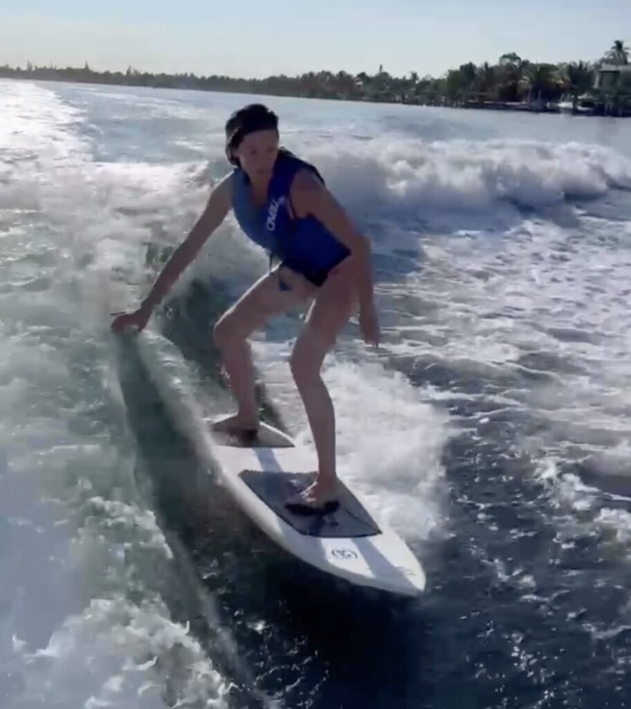 Una brasiliana come Gisele non poteva non condividere anche la sua passione per il mare. Con il wake surf l'atleta sfrutta l'onda generata da una barca. È un ottimo esercizio cardiovascolare che coinvolge tutto il corpo, migliorando l'equilibrio e la coordinazione.
