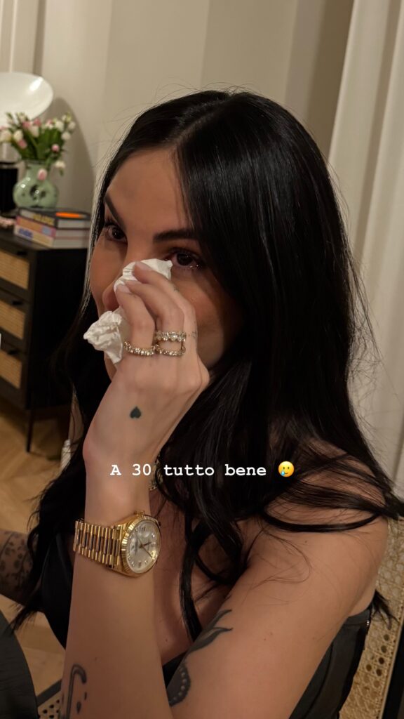 Sempre nelle Stories dopo la mezzanotte ha condiviso le foto di alcuni messaggi di auguri che le hanno lasciato i suoi affetti più cari, ma anche lo scatto di una torta di compleanno e un’altra immagine in cui appare con le lacrime – di commozione – agli occhi. “A 30 tutto bene”, ha concluso.