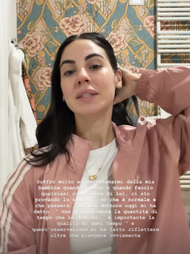 La romana chiarisce: “Spesso ci preoccupiamo di dover stare, o perlomeno io, tanto tempo, tutto il tempo con lei quando in realtà potrei spostare questo pensiero e dirmi: è vero che magari a volte, o la maggior parte del tempo, ultimamente sto ricominciando, riprendendo a lavorare sempre di più, però quel tempo che io passo con lei è veramente di estrema qualità. Quando sto con mia figlia do tutto, il massimo. Il 100%, ogni volta, ogni giorno, anche quando c'è una stanchezza incredibile. Magari, non lo so, il 100% non riesco a tirarlo fuori neanche per me stessa. Ecco, in qualche modo io con lei riesco ad essere sempre incredibile, sempre impeccabile. E quindi questa cosa mi ha un po' sollevato. Niente, ve la volevo dire”.