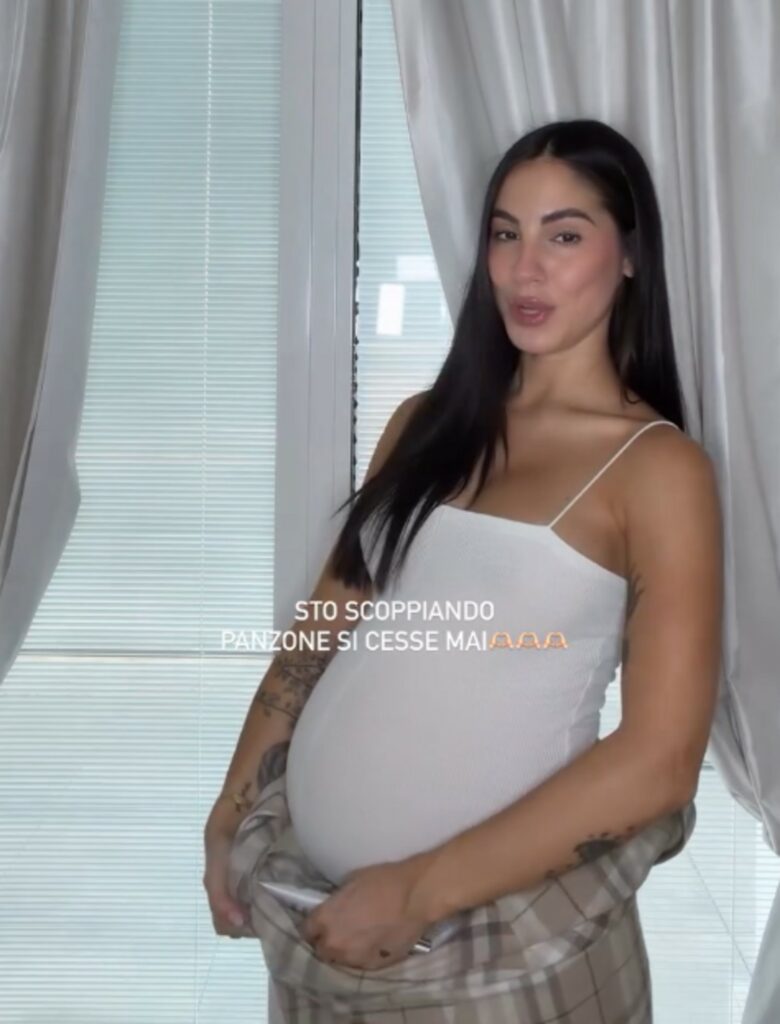 Giulia De Lellis nelle Stories, mentre parla dei prodotti di bellezza, spiazza tutti e dice: “Sto scoppiando. Qui è tutta un’esplosione”. Mostra il pancione di otto mesi ormai enorme. E’ quasi al termine della gestazione: Priscilla dovrebbe nascere a fine ottobre, al massimo inizio novembre.