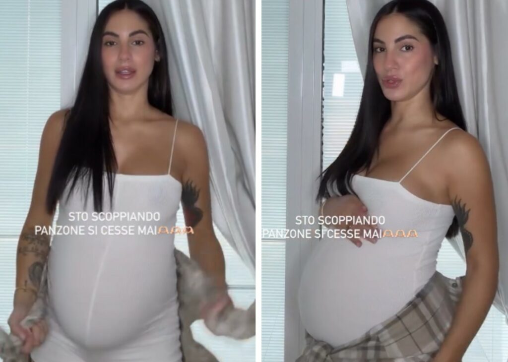 Giulia De Lellis nelle Stories, mentre parla dei prodotti di bellezza, spiazza tutti e dice: “Sto scoppiando. Qui è tutta un’esplosione”. Mostra il pancione di otto mesi ormai enorme. E’ quasi al termine della gestazione: Priscilla dovrebbe nascere a fine ottobre, al massimo inizio novembre.