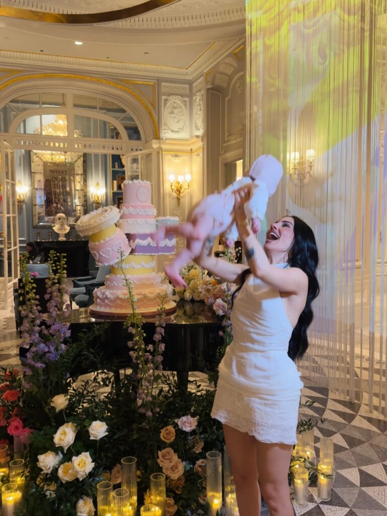 Dopo il battesimo tutti si sono recati al Lumen Cocktails & Cusine, un locale bellissimo e suggestivo inserito del lussuoso hotel The St. Regis Rome, a pochi passi dalla Basilica. Sorrisi, risate, brindisi e per finire torta colorata a più piani.