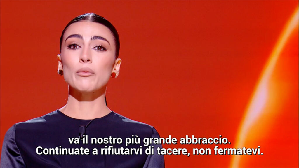 Poi con la voce rotta e le lacrime negli occhi Giulia sottolinea: “E’ inconcepibile, deprimente, offensivo che voi donne che vi siete sacrificate per raggiungere importanti posizioni nella società iraniana e per farla progredire, ancora oggi dobbiate subire le pretese di un regime che vuole decidere cosa c'è di giusto e cosa di sbagliato in voi. A voi che reclamate la stessa libertà che in passato è stata negata ad altre, come mia madre, va il nostro più grande abbraccio. Continuate a rifiutarvi di tacere, non fermatevi, noi siamo con voi, vi voglio tanto bene. Donna, vita, libertà”.