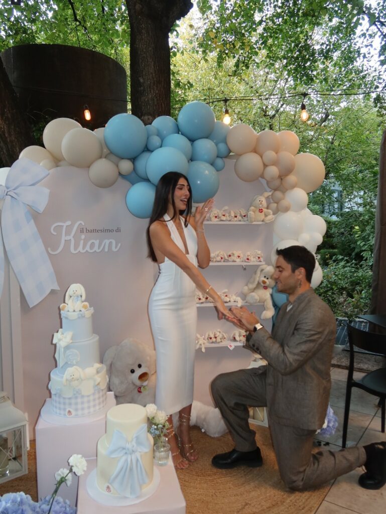 Commozione enorme quando Kian ha ricevuto il sacramento. Sono arrivate le foto di rito, realizzate da Francesca Marelli, la loro fotografa, chiamata per l’occasione. Poi tutti, amici e parenti, hanno raggiunto la location del party.