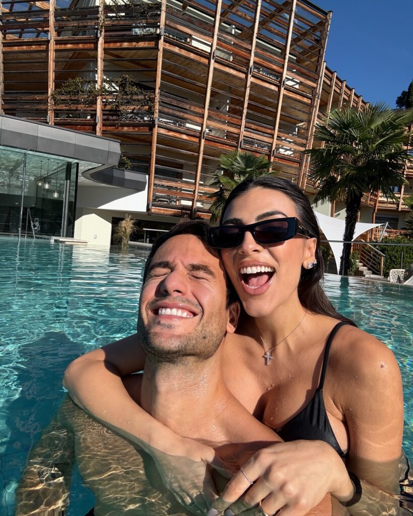 La coppia felice vive a Milano, ma spesso si separa per impegni professionali. La Salemi non ha smesso di lavorare nemmeno in gravidanza e Pretelli è attualmente in teatro con il musical 'Rocky'. Ecco allora che ogni pausa diventa preziosa per fuggire dalla routine. I due sono partiti per qualche giorno in direzione Trentino Alto Adige. Eccoli in una meravigliosa struttura affacciata sul Lago di Caldaro e sui vigneti circostanti in provincia di Bolzano. Tra terme e massaggi, la 31enne coccola il suo pancione di 8 mesi e si gode la compagnia del suo amore.