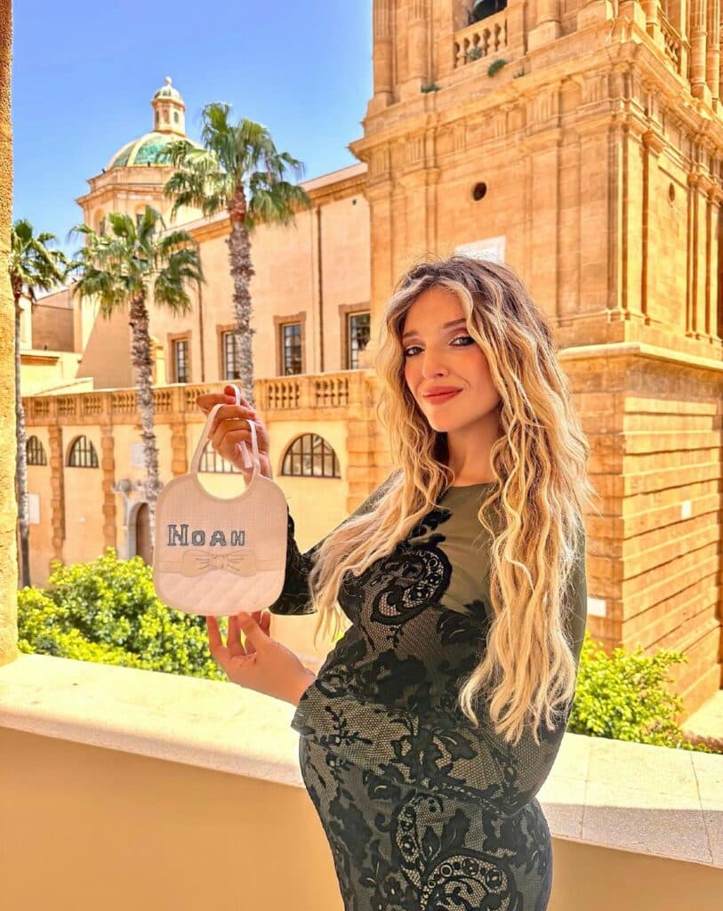 Guenda Goria, alla fine del quinto mese di gravidanza, è raggiante. La 35enne e il futuro marito 32enne rivelano come chiameranno il loro figlio in diretta tv. A La Volta Buona, in collegamento con lo studio del programma di Rai 1, a Caterina Balivo confidano il nome scelto per il bebè. I due poi sul social condividono alcune tenere immagini: lei mostra il bavaglino del piccolo con sopra ricamato Noah. Nel post che accompagna le foto rivolge il suo pensiero al bimbo. “Spero che questo nome ti piacerà”, scrive la figlia di Maria Teresa Ruta e Amedeo Goria.