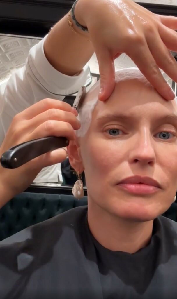 Non lascia che la paura di non farcela prenda il sopravvento. La top model 40enne si mostra sempre ai follower col sorriso sulle labbra. Nelle sue Stories condivide l’esperienza dal barbiere con dovizia di particolari: foto e video la ritraggono mentre si fa insaponare la testa con l’apposito pennello e poi, da una donna esperta, rasare piano, piano.