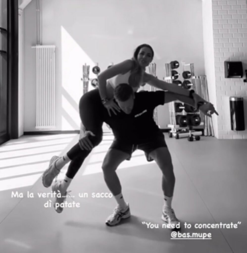 La mattinata in palestra trascorre in fretta quando si sta bene. La conduttrice e il compagno si danno da fare con gli attrezzi, poi il momento di svago. Ilary si fida a tal punto di Bastian che lo elegge danzatore e gli fa provare a tenerla su. Sul social posta il video che li ritrae bellissimi così. Lei vola sulle braccia dell’uomo con cui ha ritrovato la serenità sentimentale nel ‘dopo Totti’.