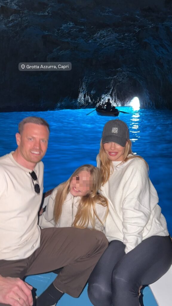 - La conduttrice e il fidanzato si godono il bel tempo dell’isola dell’amore con la piccola di 10 anni