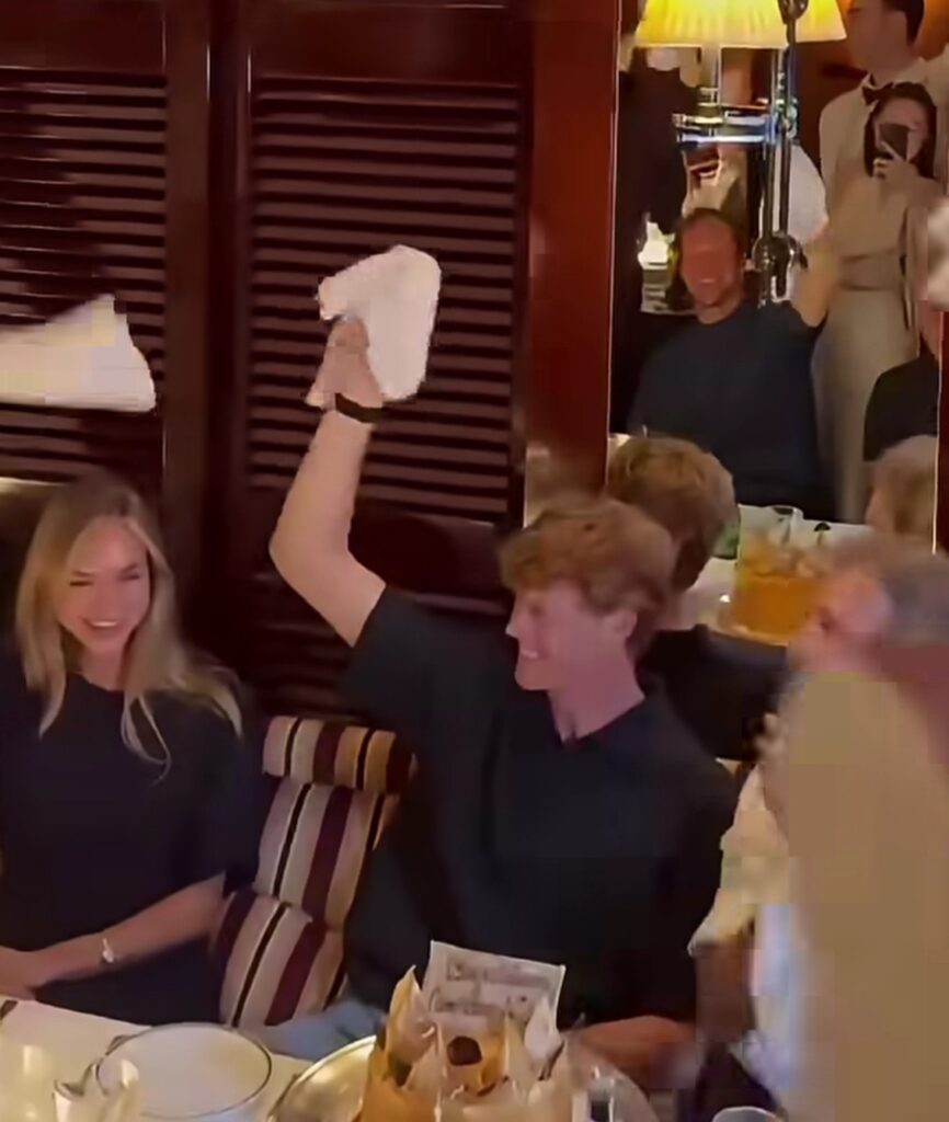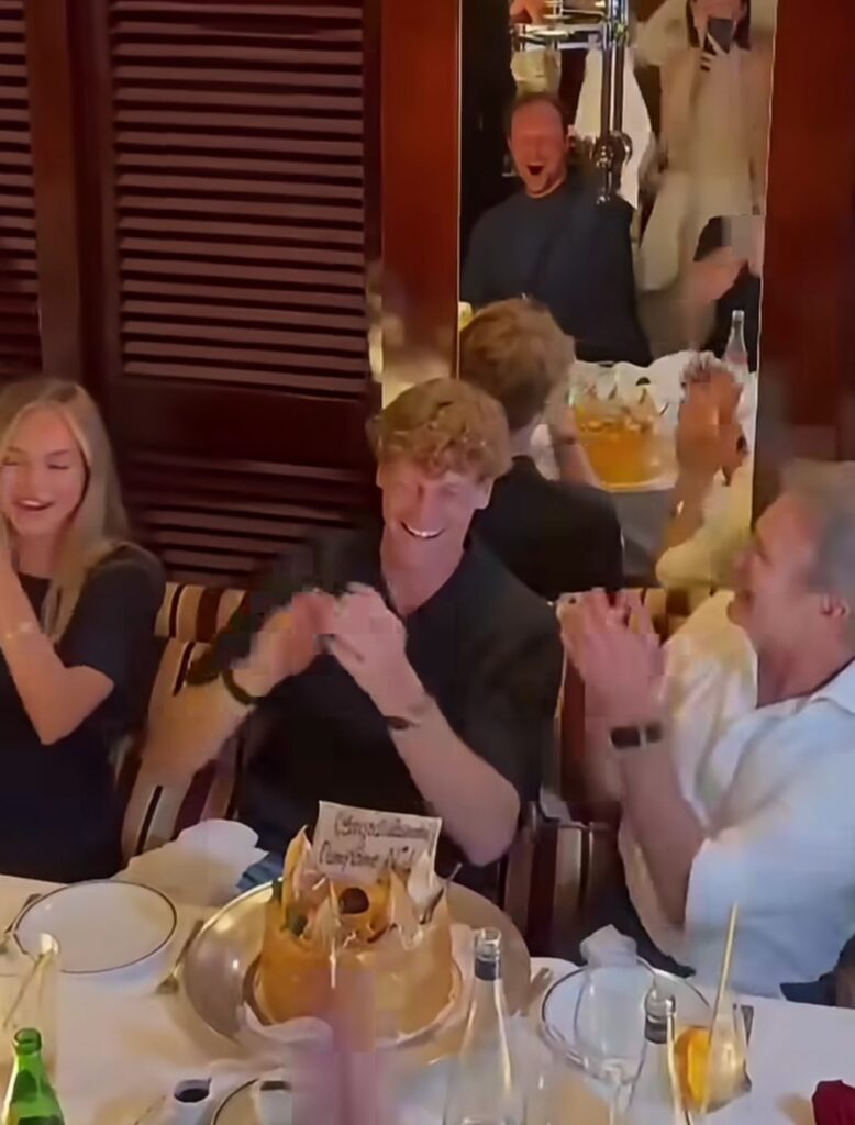 Ha vinto il Masters 1000 ed è nuovamente numero uno della classifica Atp. Jannik Sinner festeggia il primato mondiale con la fidanzata Laila Hasanovic a Monte Carlo, lo fa nel lussuosissimo ristorante Cipriani. Con loro seduto al tavolo c’è anche Alessandro Benetton. E’ una sua fan che pubblica il video nelle sue Storie. Il breve filmato diventa immediatamente virale.