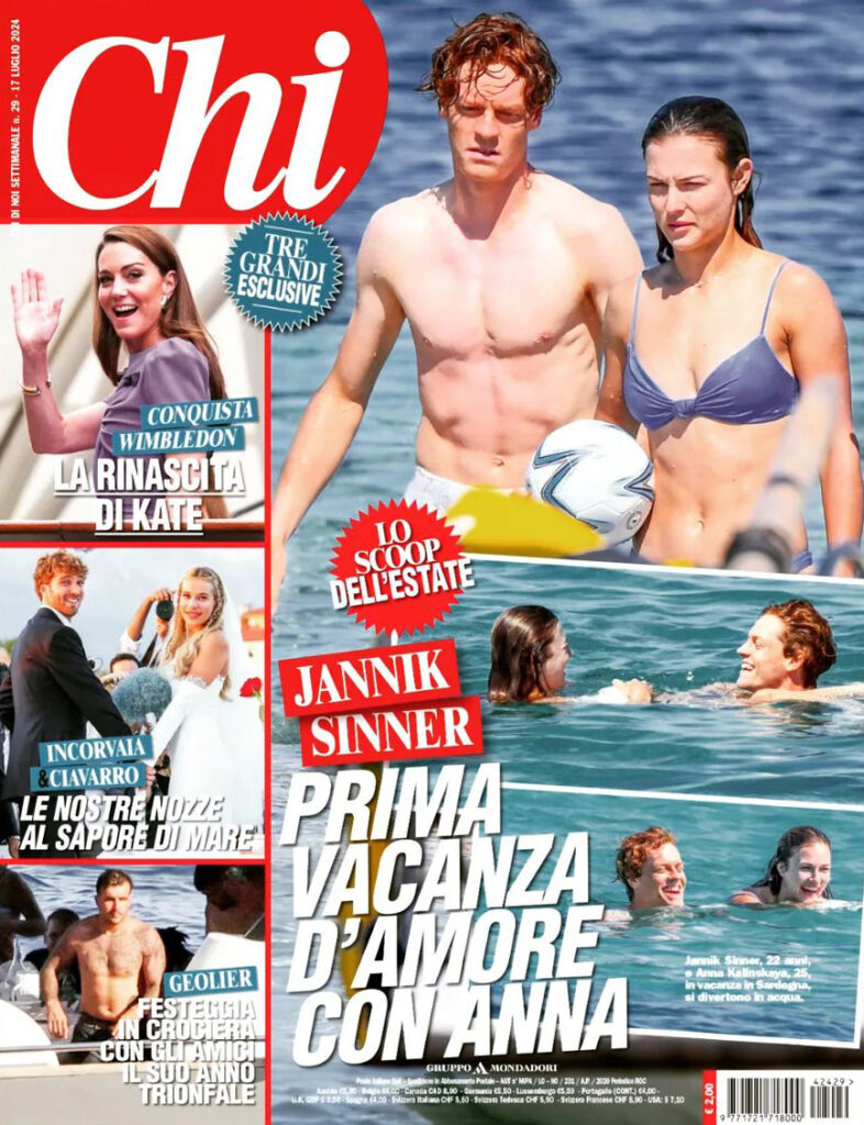 Il 22enne si gode il tempo libero tra nuotate, coccole, risate e chiacchiere in attesa delle Olimpiadi di Parigi che si disputeranno tra il 27 luglio e il 4 agosto. Dopo i problemi a Wimbledon, i medici gli hanno consigliato il riposo. “Il mio team e i medici mi hanno consigliato di prendermi del tempo per riposare e recuperare” ha scritto sui social. Eccolo allora al mare sorridente per la sua prima vacanza di coppia con Anna. Dopo aver perso a Wimbledon contro Daniil Medvedev, il tennista è atterrato a Porto Cervo. Ha scelto di trascorrere qualche giorno nelle acque limpide del Sassarese, a Cala Granu. Prima di Jannik, la Kalinskaya è stata fidanzata con un altro tennista, Nick Kyrgios; mentre Sinner ha avuto una lunga storia con l'influencer Maria Braccini.
