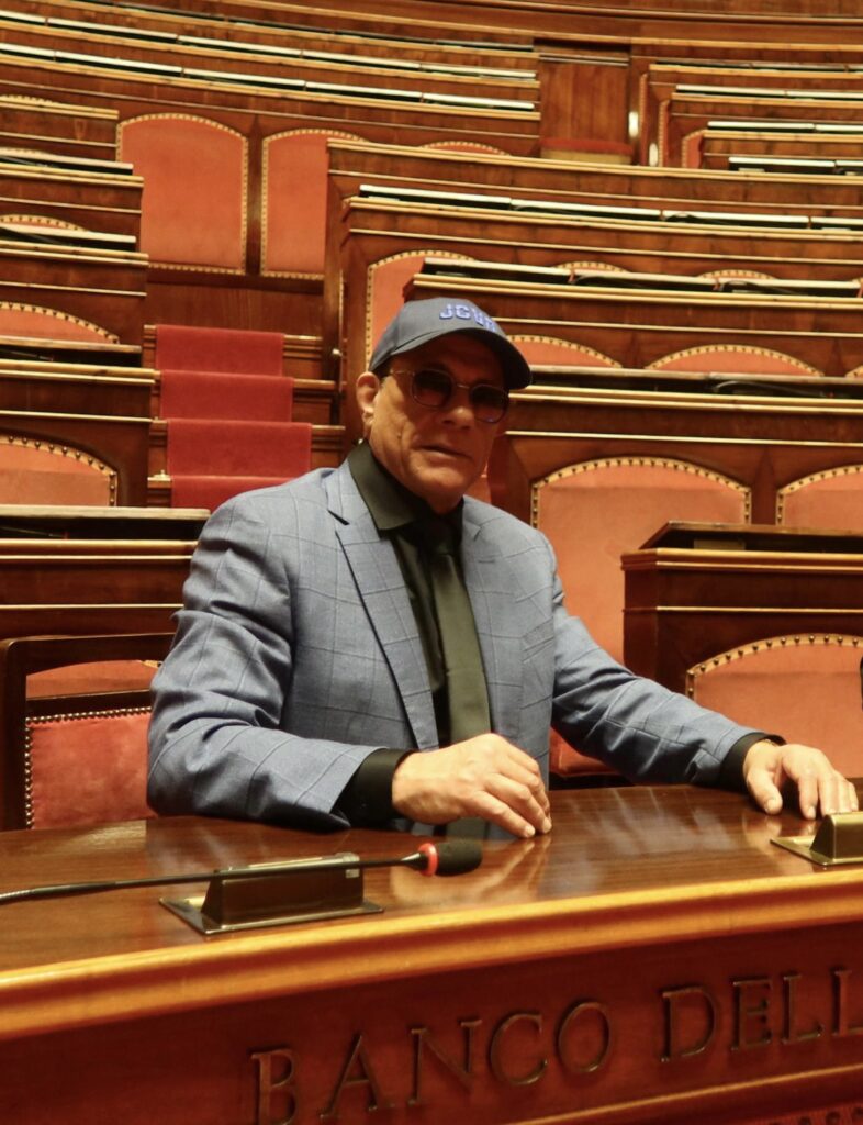 Durante il tour in Italia, Van damme è stato anche in Senato a Roma (foto ricevuta da Uff.Stampa)