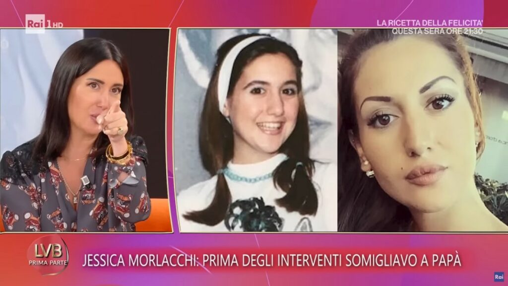 Lei parla dei genitori, la Balivo a sorpresa ha organizzato un collegamento proprio con loro. Prima parte un videomessaggio registrato dal padre della Morlacchi. "Io sono contento che ti sei rifatta il naso, le labbra, perché sei più felice, ma ricordati sempre che il problema non è il naso è il carattere. Io ti saluto e ti mando un bacio, ciao Jessichina!”, dice l’uomo.