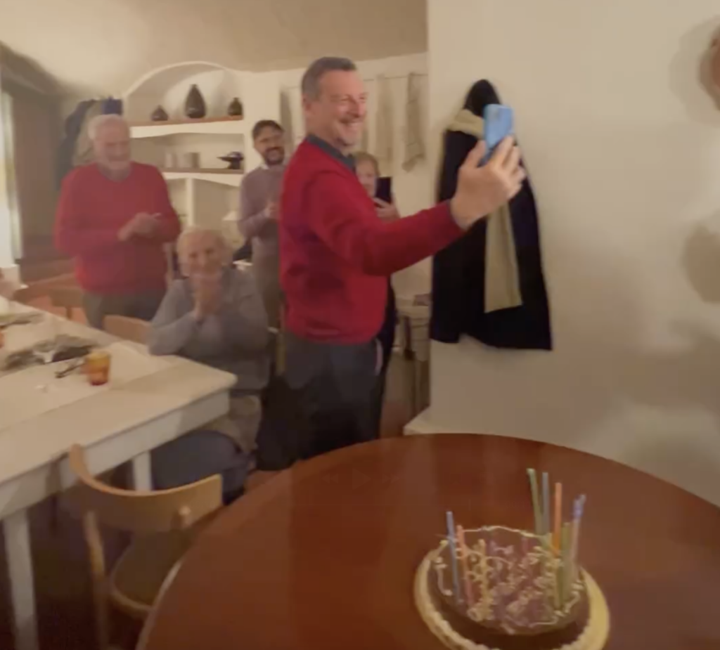 Ci sono anche gli amici più cari del ragazzo e i nonni Corrado e Antonella, Paolo e Gelsomina. Il famoso padre riprende tutto con lo smartphone