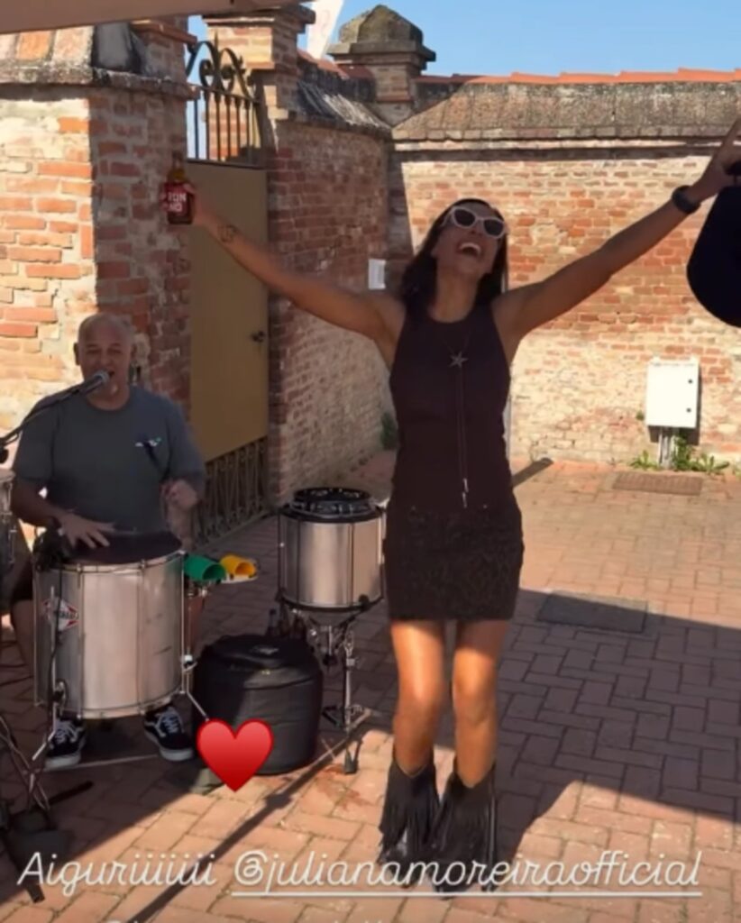 Si cuociono gustose bistecche sulla brace, si brinda, si ride, si balla e si canta a squarciagola. Con Juliana ci sono un mare di intimi super vip. Lei condivide tantissimo sul social e svela la presenza di Giorgia Palmas, Simona Salvemini, Michela Coppa, Thais Wiggers, Matteo Franceschini, Stefano Corti con i due figli, Gabriele e Noa, 18 e 3 anni, Marica Pellegrinelli e moltissimi altri.