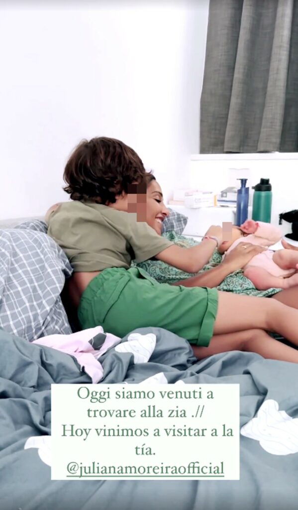 La Moreira si spupazza il tenero Noa con accanto il figlio Sol Gabriel, nato il 26 agosto 2016 e che ora ha sei anni e mezzo. E’ anche madre di Lua Sophie, venuta al mondo il 25 luglio 2011, 11 anni. “Innamorati persi”, sottolinea taggando la Rodriguez in una foto in cui è col neonato dolcemente appoggiato sopra di lei.