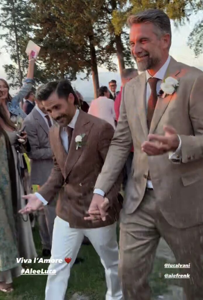 Nelle immagini pubblicate sui social, Luca appare elegantissimo, sereno e sorridente accanto al compagno. I festeggiamenti sono andati avanti fino a notte fonda.