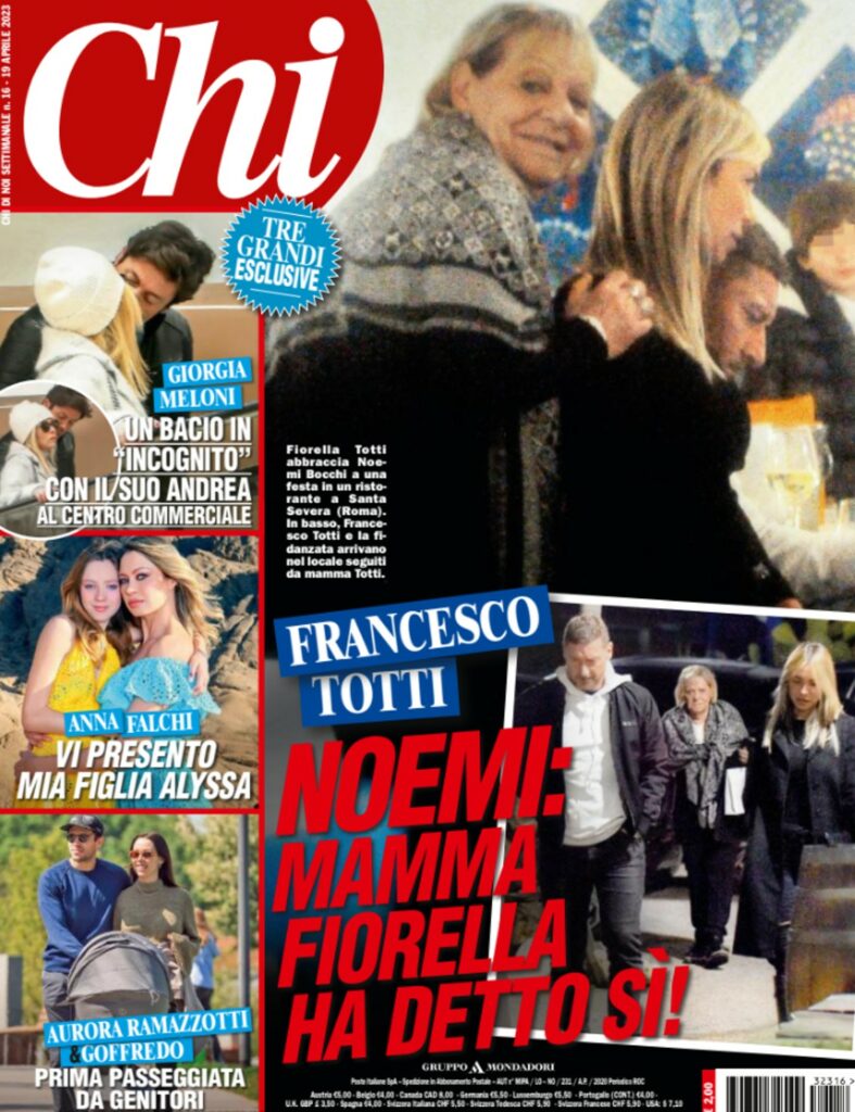 Fiorella Totti sembrerebbe conquistata da Noemi Bocchi. La paparazzata che Chi mette in copertina racconta il grande feeling che si sarebbe creato tra la mamma di Totti e la nuova fidanzata del figlio. La 36enne piace molto alla donna. I fotografi hanno pizzicato i tre a Santa Severa, famosa località balneare nei pressi di Roma, mentre vanno alla festa di compleanno di uno dei migliori amici di Francesco, Giancarlo Pantano. Come un’allegra famigliola si dirigono al ristorante L’Isola del Pescatore.