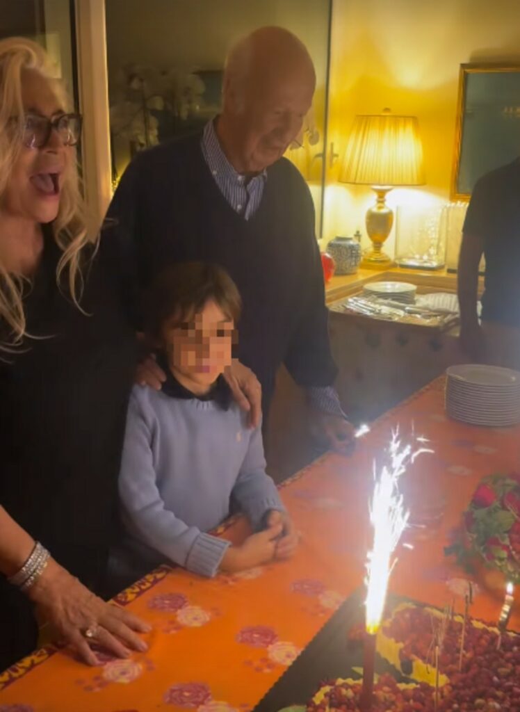 Spegne le candeline con accanto il nipotino e il marito Nicola Carraro