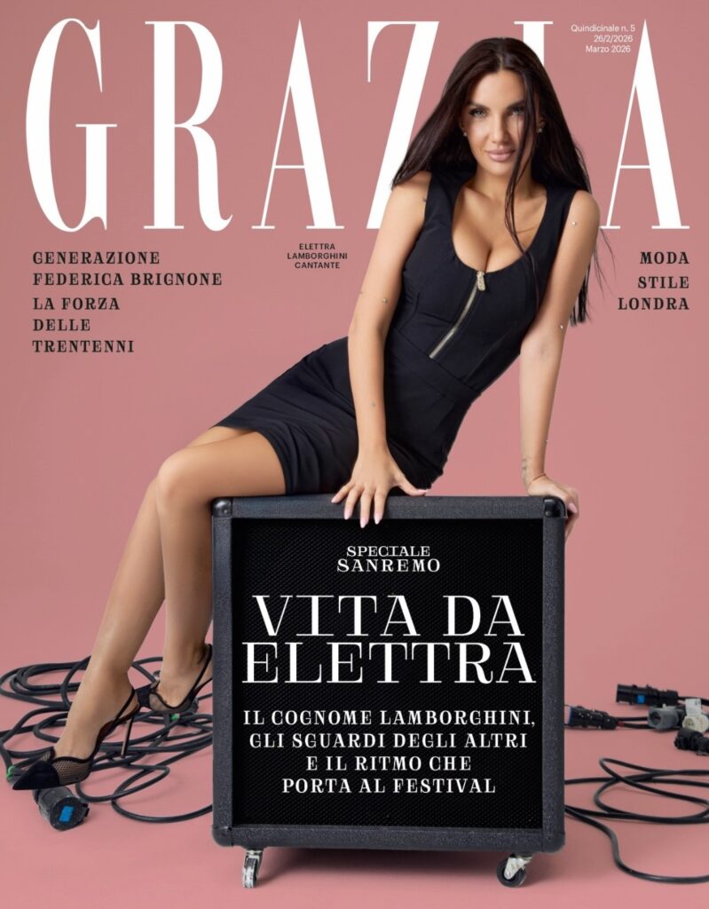 Elettra Lamborghini, in gara tra i Big a Sanremo 2026, si prende la cover di Grazia. Al settimanale svela tanto di sé e confessa: “Con mio marito Afrojack abbiamo la regola degli 8 giorni”.