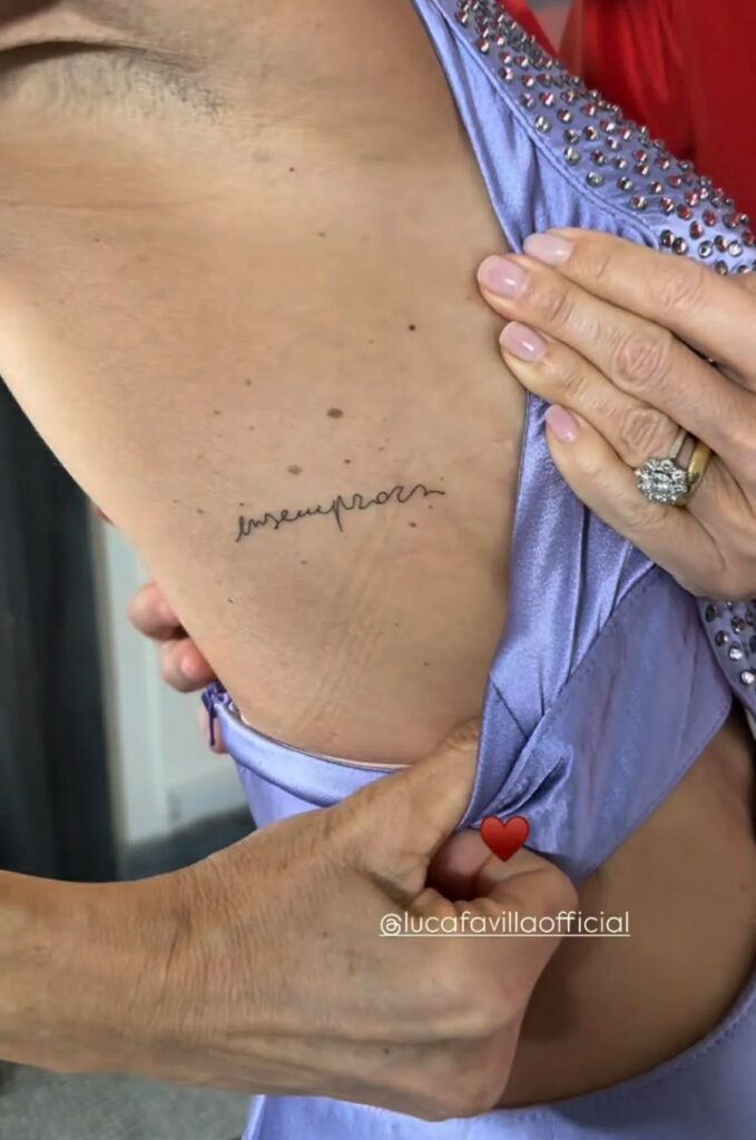 L’ex Miss Italia ha scelto di farsi il tatuaggio in occasione della finalissima del popolare programma di Rai1. Ha scelto un luogo del suo corpo leggermente nascosto: sul costato, quasi sotto l’ascella. Martina lo confessa nelle sue Storie. “Nessuno lo sa, ma mi sono tatuata", svela. Ha optato per una semplice scritta che recita “in per sempre”. In questo modo desidera sottolineare che quel che ha imparato a Ballando, non solo tecnicamente, ma umanamente e interiormente, la arricchirà da qui in poi nel corso della sua esistenza.