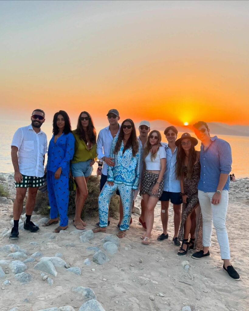 Poi una foto con tutta l’allegra comitiva di amici, che si sta godendo la bella stagione tra risate e bagni nel Mediterraneo.