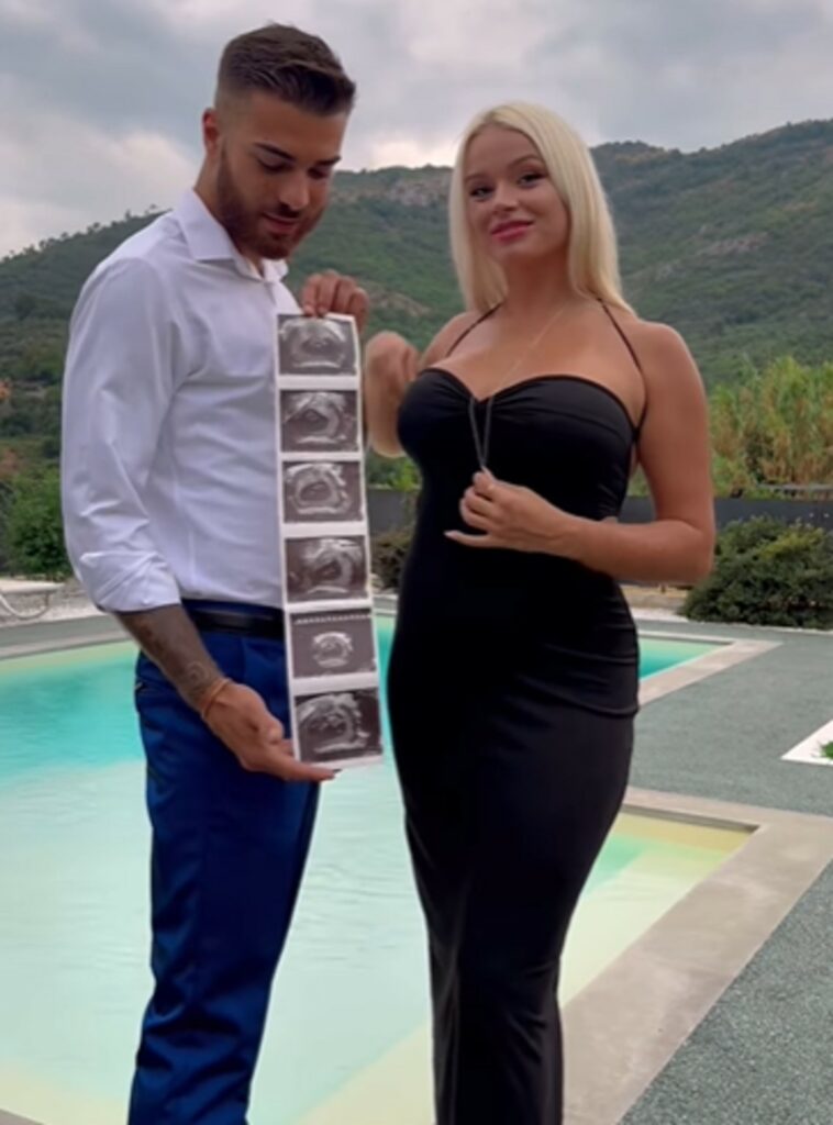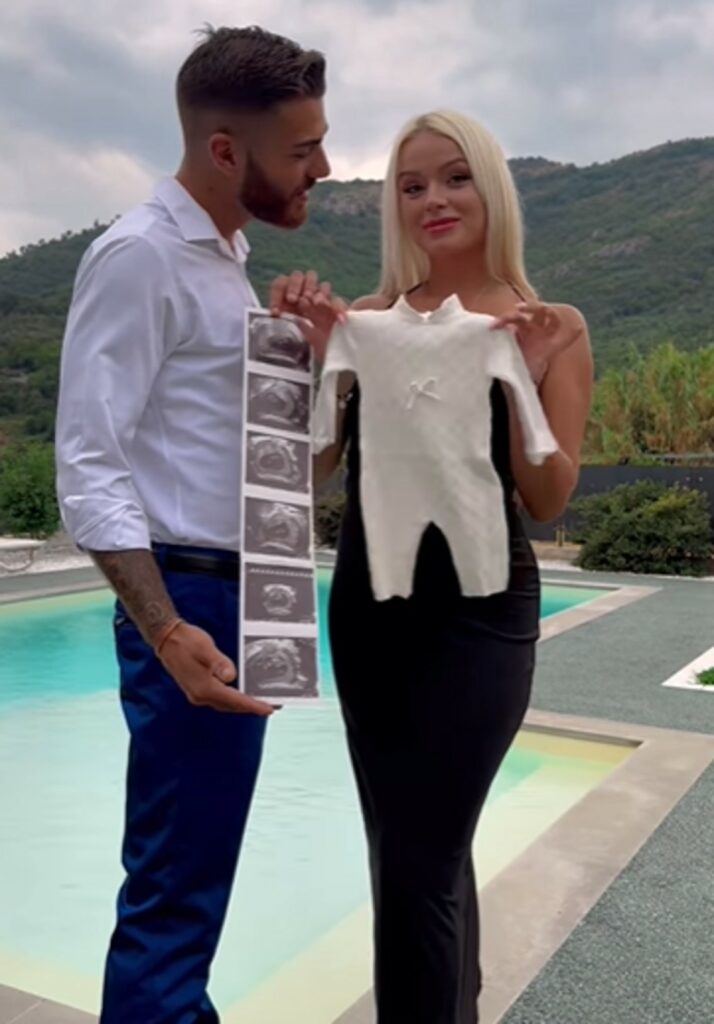 Nel breve filmato l’ex naufraga dell’Isola dei Famosi indossa un aderentissimo abito nero lungo che mette in mostra il pancino. Accanto a lei c’è Alessio. “Vi abbiamo tenuto nascosto qualcosa…”, si legge. Subito dopo Salata mostra le ecografie che svelano la dolce attesa della compagna. Lei tira fuori la collana Chiama Angeli, simbolo di protezione e amore per chi è in gravidanza. Sorride sognante.