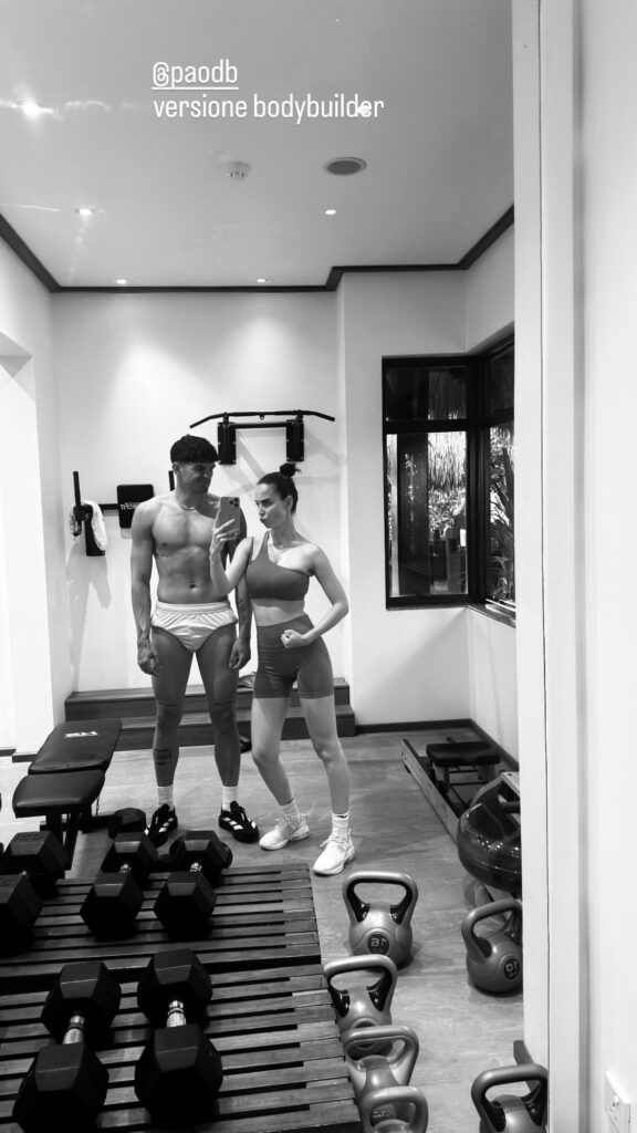 La 30enne e il calciatore 25enne condividono alcuni scatti del viaggio che li ritraggono insieme con i volti raggianti, o sulla jeep mentre scorrazzano per la savana o mentre bevono un rinfrescante cocktail vista mare al tramonto, o ancora mentre si allenano nella palestra del resort ‘vicini, vicini’.